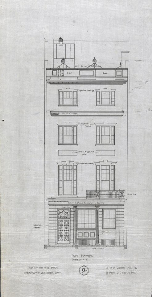 Comm 393 – Front Elevation – Hist NE Scan 1AA ← Previous Next → Front elevation of 393 Commonwealth drawn ca. 1899 by Little and Browne; courtesy of Historic New England