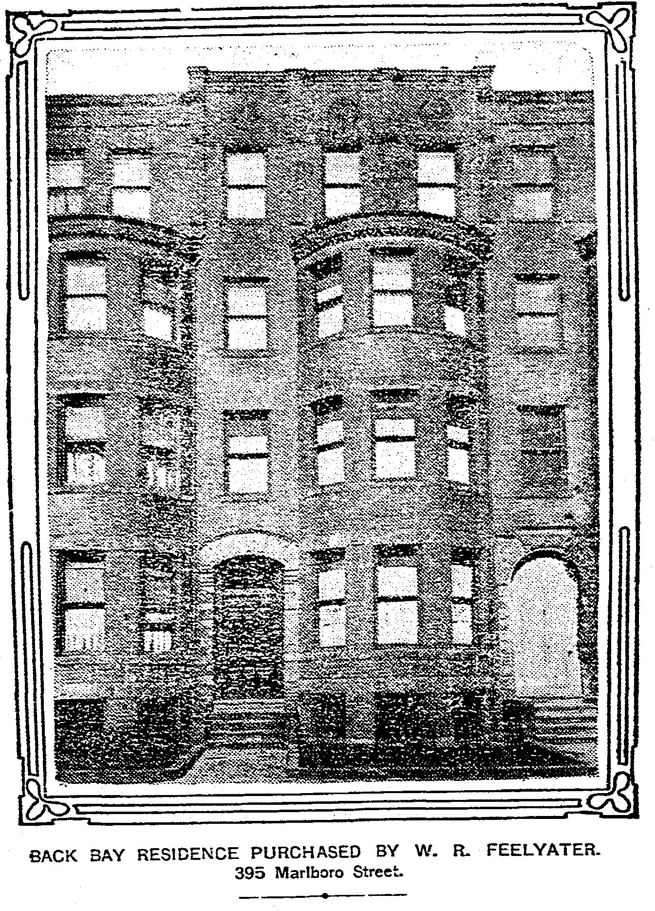 On October 12, 1904, Mary Beard transferred 395 Marlborough to William Rodney Feelyater, and they were married the next day. At the time of their marriage, he indicated that he was employed as a private secretary and that his address was 395 Marlborough. They moved soon thereafter, probably to Brooklyn, New York, where she was living at the time of her death in 1908. He continued to own 395 Marlborough and lease it to others.