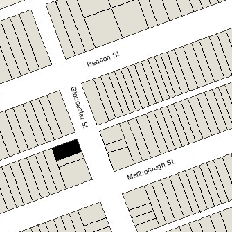 4 Gloucester is located on the west side of Gloucester, between Beacon and Marlborough, with 401 Beacon to the north, across Alley 415, and 6 Gloucester to the south.