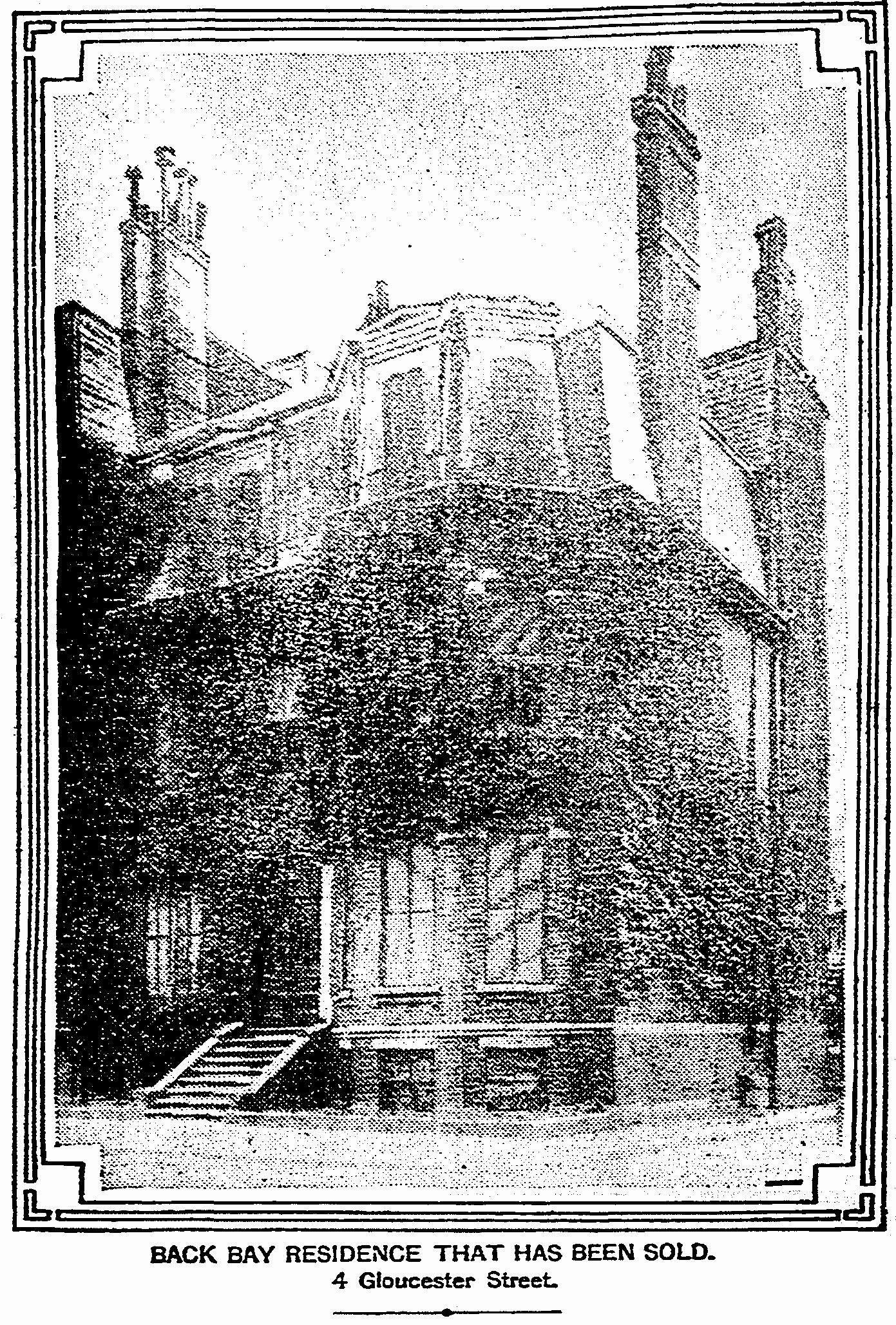 During the 1904-1905 winter season, 4 Gloucester was the home of sugar broker and investment banker Henry DeFord and his wife, Alice (Fessenden) DeFord. Their primary residence was in Brookline.