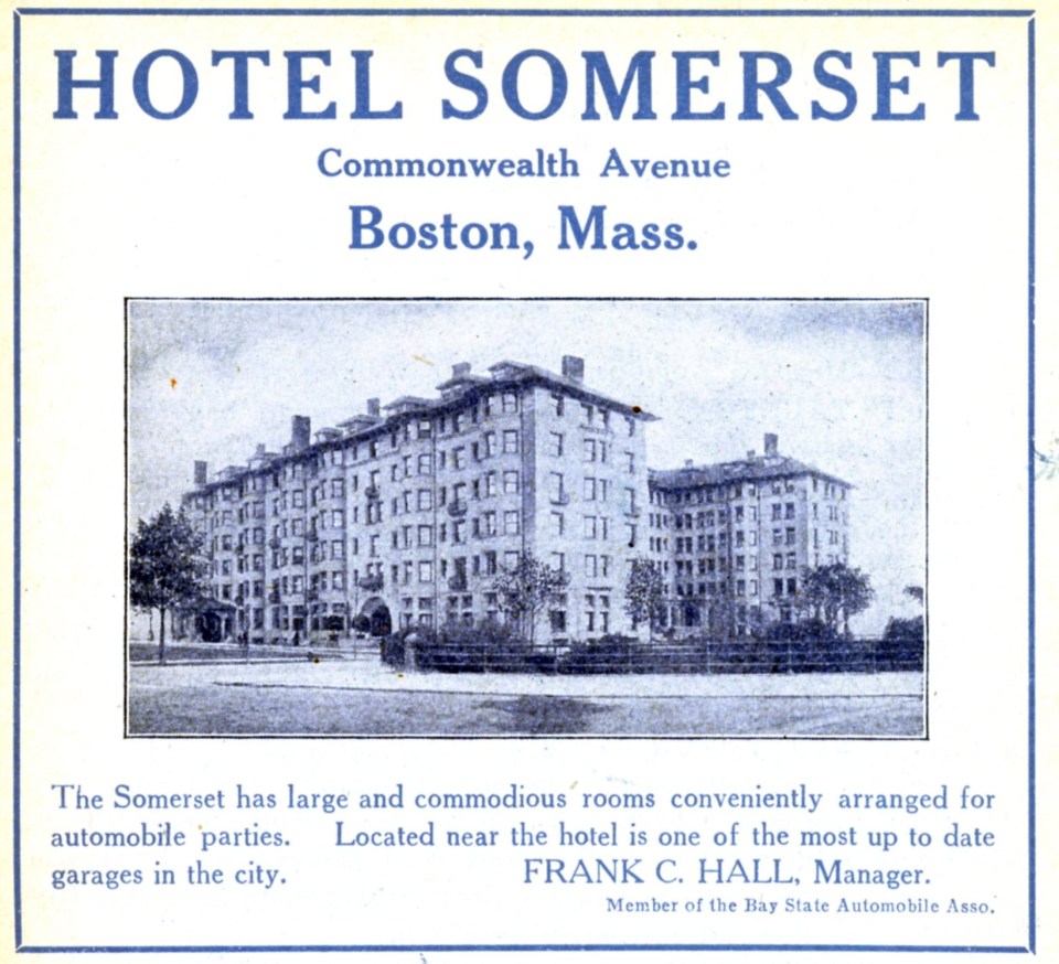 Comm 400 – Auto Blue Book – 1910 ← Previous Next → Advertisement for the Hotel Somerset, 1910 Automobile Blue Book