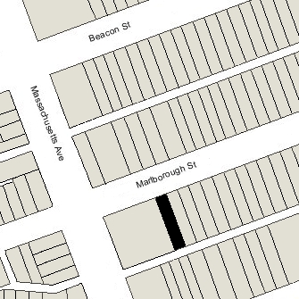 406 Marlborough is located on the south side of Marlborough, between Hereford and Massachusetts Avenue, with 404 Marlborough to the east and 416 Marlborough to the west.