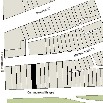The rear of the lot on which 407 Commonwealth was built extends north to Marlborough Street and has a secondary street address of 456 Marlborough.