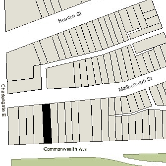 The rear of the lot on which 409 Commonwealth was built extends north to Marlborough Street and has a secondary street address of 458 Marlborough.