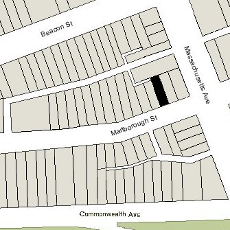 Click here for an index to the deeds for 425 Marlborough, and click here for further information on the land west of Massachusetts Avenue between the south side of Beacon and the north side of Commonwealth.