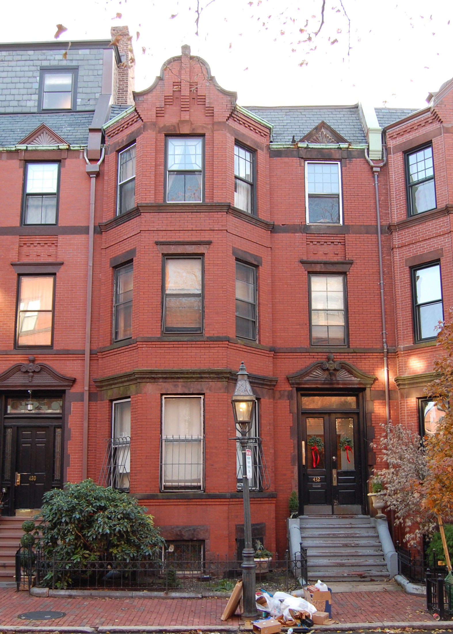 432 Marlborough is located on the south side of Marlborough, between Massachusetts Avenue and Charlesgate East, with 430 Marlborough to the east, and 434 Marlborough to the west.