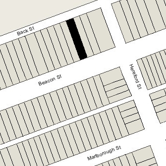 Click here for an index to the deeds for 454 Beacon, including additional information on the deeds and agreements limiting buildings in the rear of the lot, and click here for further information on the land on the north side of Beacon, including the Storrow Memorial Embankment on the Esplanade.