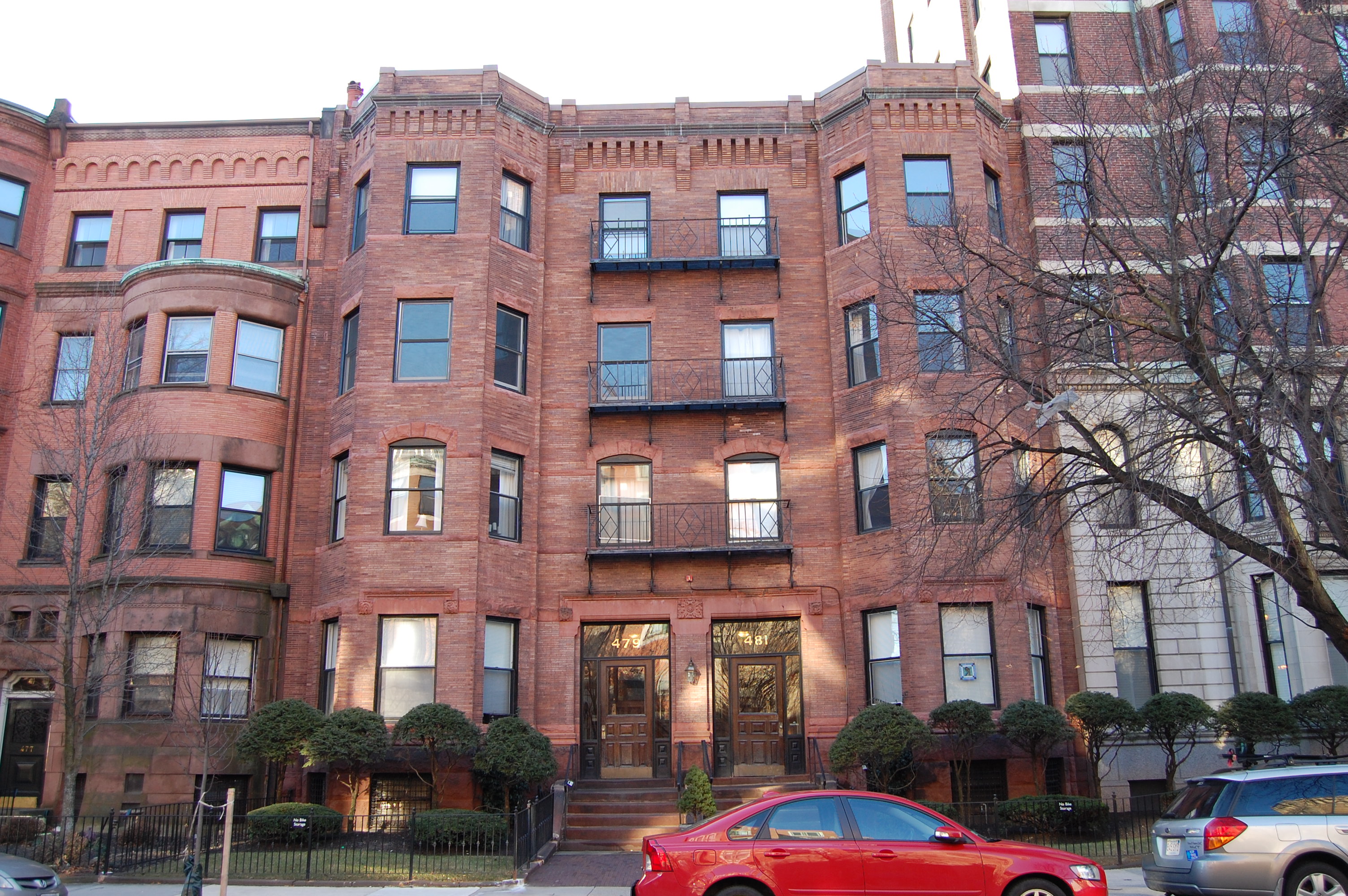 481 Beacon is located on the south side of Beacon, between Hereford and Massachusetts Avenue, with 479 Beacon to the east and 483 Beacon to the west.