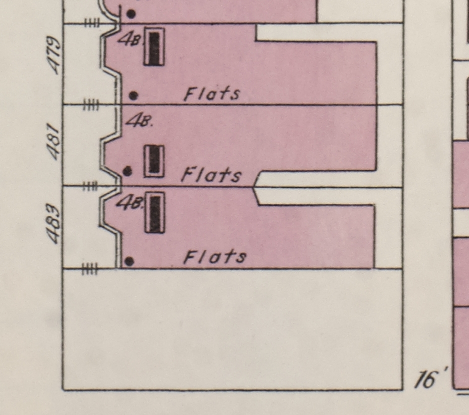 As the buildings were nearing completion, they were offered for lease by Henry Wilson Savage, a real estate dealer. On July 30, 1891, he advertised in the Boston Globe: “New Suites to Let – 479, 481, 483 Beacon st., overlooking Charles river and new Harvard bridge, 6 and 7 rooms, beside bath, all open to outside light and sun, extra storage and coal closets, open fireplaces, marble halls, stairs and bathrooms, steam heat and every modern improvement; rents $900 and upwards.”