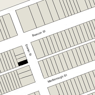 5 Exeter is located on the west side of Exeter, between Beacon and Marlborough, with 3 Exeter to the north and 7 Exeter to the south, across Alley 417.