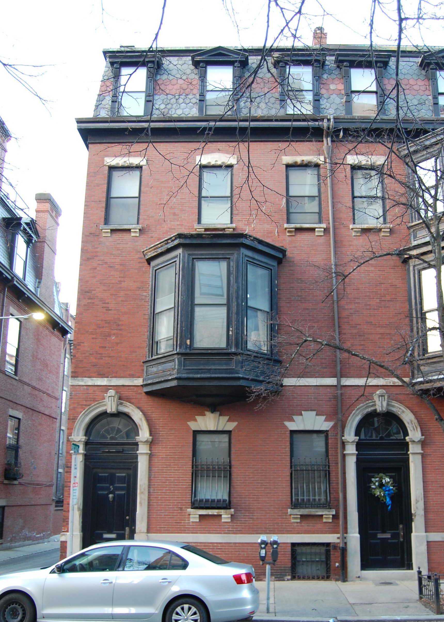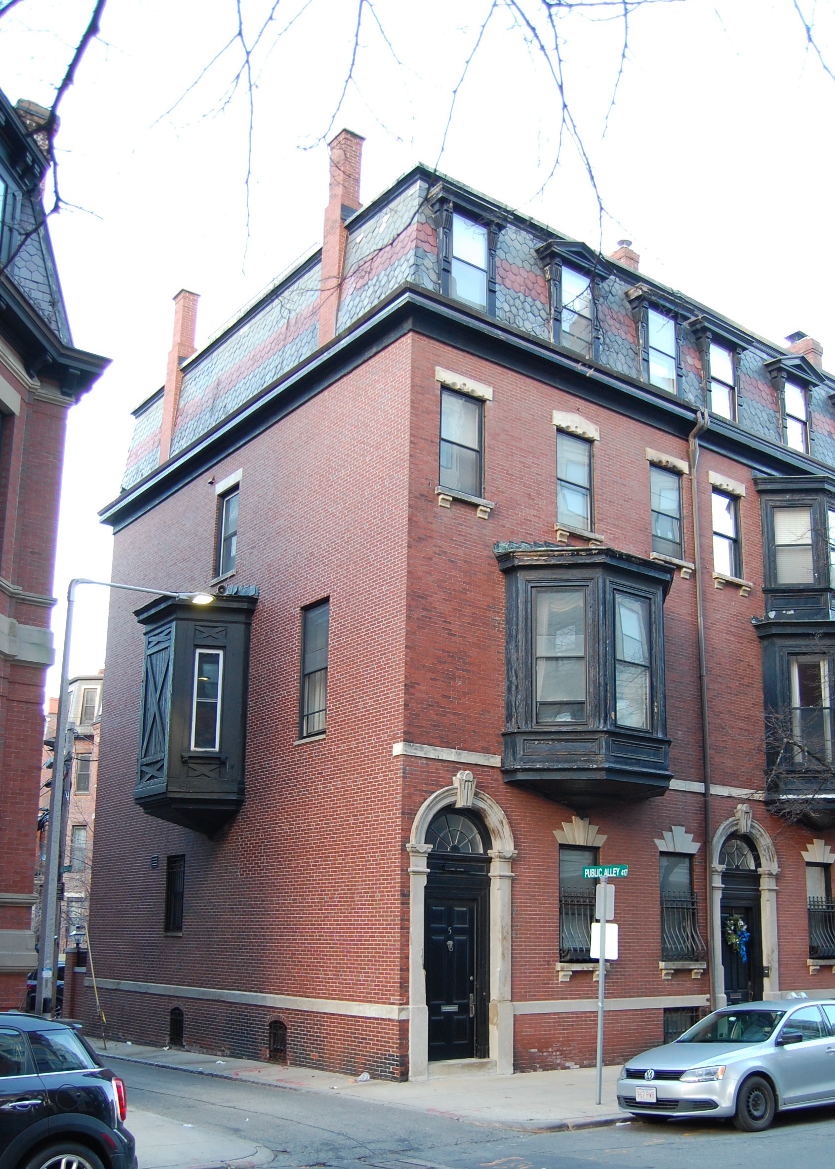 5 Exeter was built ca. 1870 for building contractor George Wheatland, Jr., for speculative sale, one of four contiguous houses (1-3-5 Exeter and 299 Beacon) which form a single unit between Beacon Street and Public Alley 417.