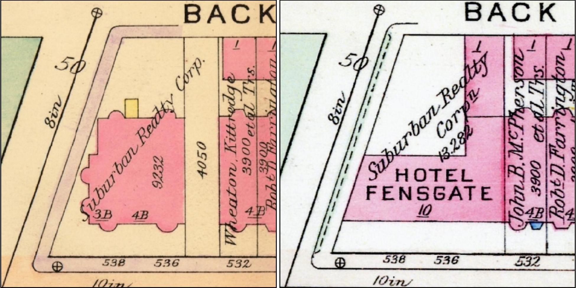 In August of 1945, the Fensgate Hotel applied for (and subsequently received) permission to construct a 50 foot x 78.5 foot dining room addition at the rear of the building.