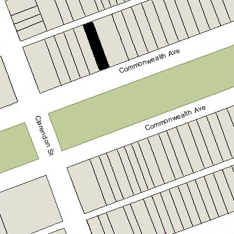 55 Commonwealth is located on the north side of Commonwealth, between Berkeley and Clarendon, with 49-51 Commonwealth to the east and 57 Commonwealth to the west.