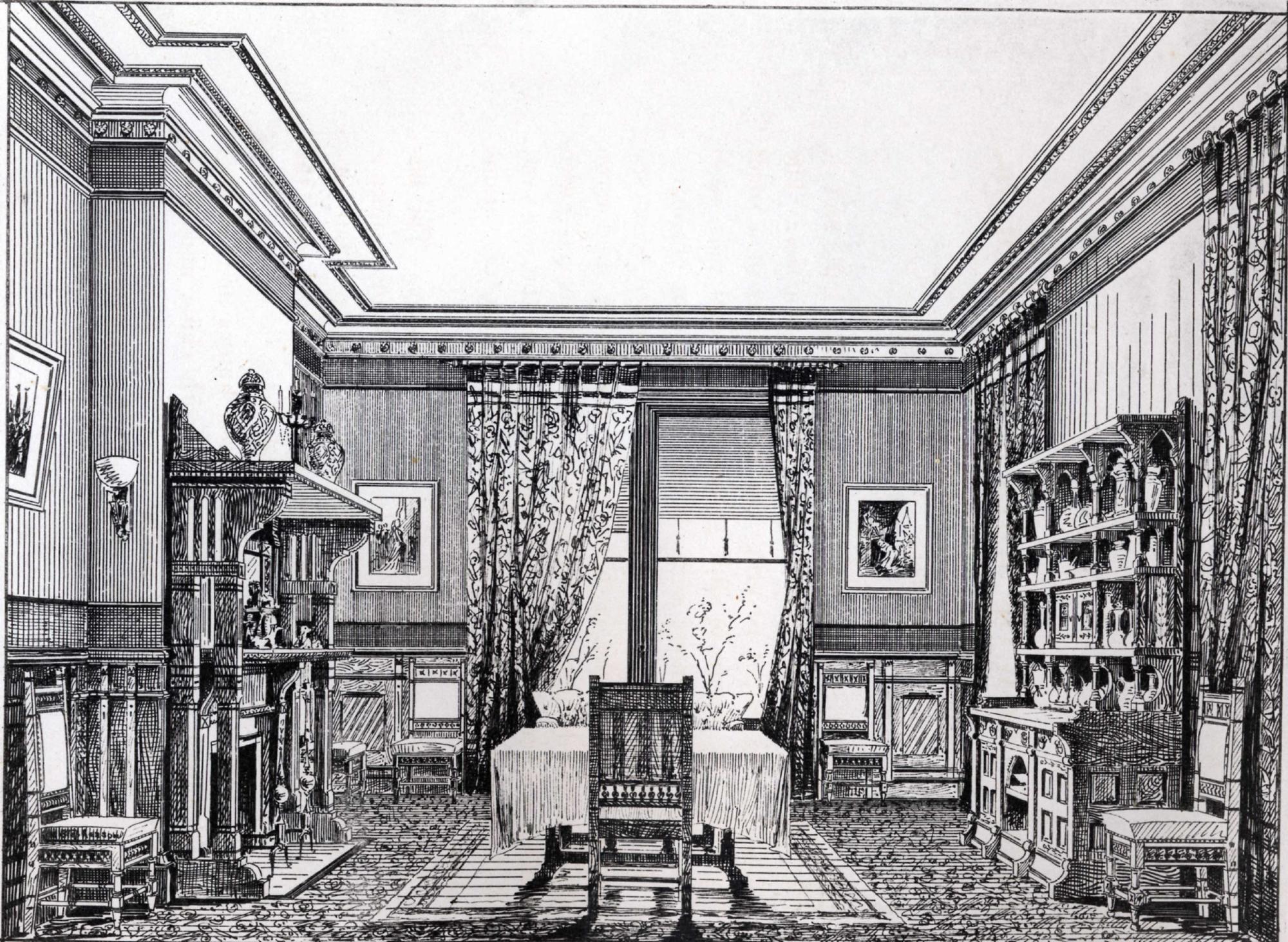 Comm 057 Dining Room (1876) ← Previous Next → 57 Commonwealth, Dining Room, from “The Book of American Interiors” (1876)