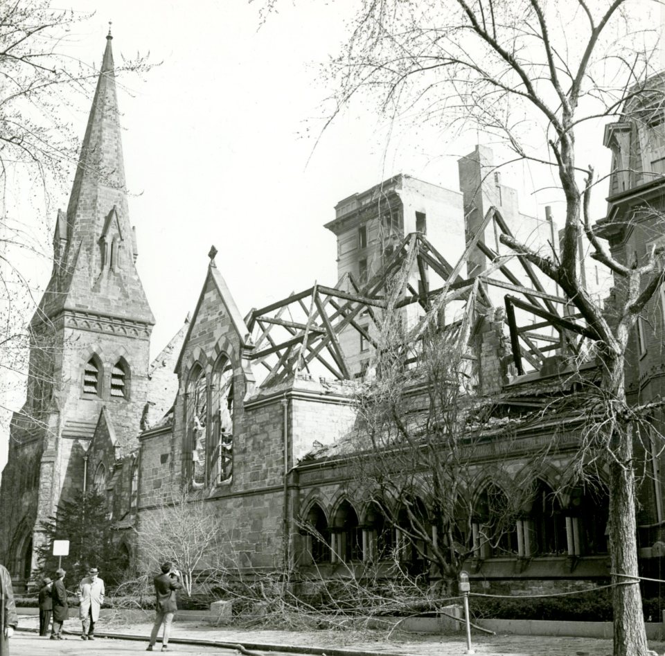 Marl 060 (1968) BRA Athenaeum A ← Previous First Church following March 29, 1968 fire; photograph by the Boston Redevelopment Authority, courtesy of the Boston Athenaeum