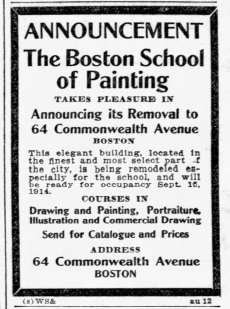 On August 12, 1914, 64 Commonwealth was purchased from Elizabeth Pierce by Arthur Merton Hazard. He was a portrait and landscape artist, and also operated the Boston School of Painting at 20 St. Botolph. He remodeled 64 Commonwealth and moved his studio and the school to the house. He and his wife, Julia Hazel (Closterhouse) Hazard, lived in Brookline.