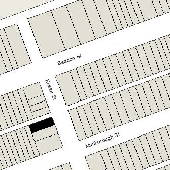 7 Exeter is located on the west side of Exeter, between Beacon and Marlborough, with 5 Exeter to the north, across Alley 417, and 9 Exeter to the south.
