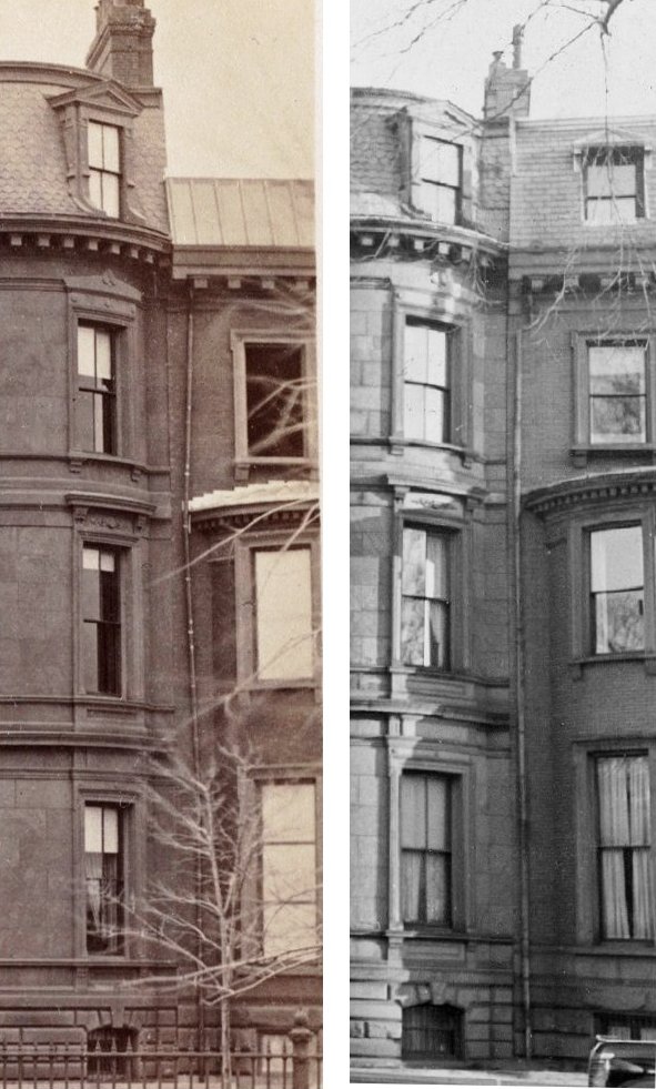 74 Commonwealth was built by Webster & Dixon, masons, in 1870-1871 as the home of Jane Hereford (Hallett) Sayles, the widow of Francis Willard Sayles, and their daughter, Lorna Larned Sayles.