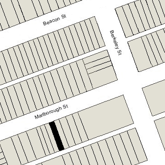 Click here for an index to the deeds for 74 Marlborough, and click here for further information about the land between the south side of Marlborough and Alley 423, from Berkeley to Clarendon.