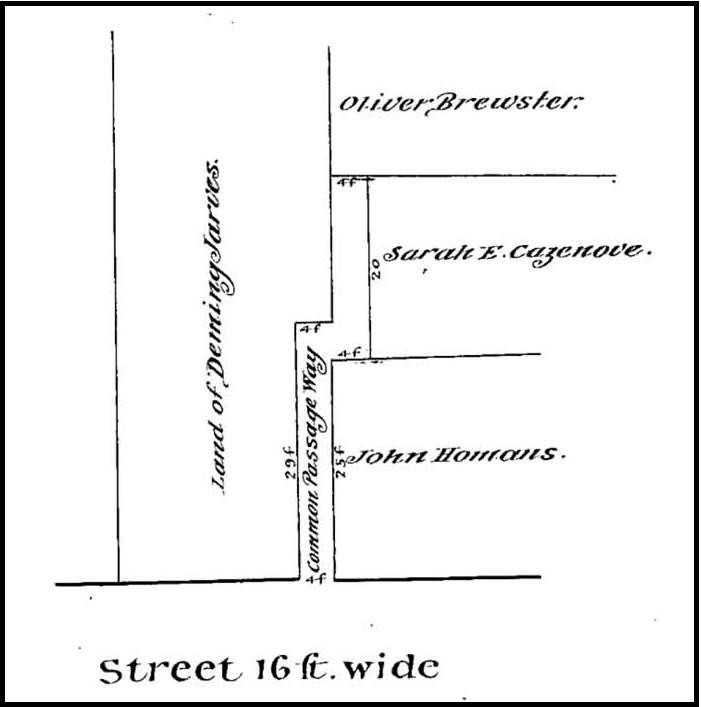 Plan of easement for passageway at rear of 10-11 Arlington; Suffolk Co. Deed Registry, Book 808, p. 20 (6Jan1862)