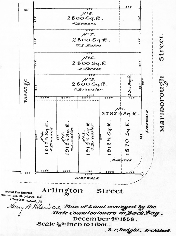 Deed 0749-056 (1858 Map – Arli SW Marl) ← Previous Next → Plan of land sold by the Commonwealth; Suffolk Co. Deed Registry, Book 749, p. 56 (9Dec1858)