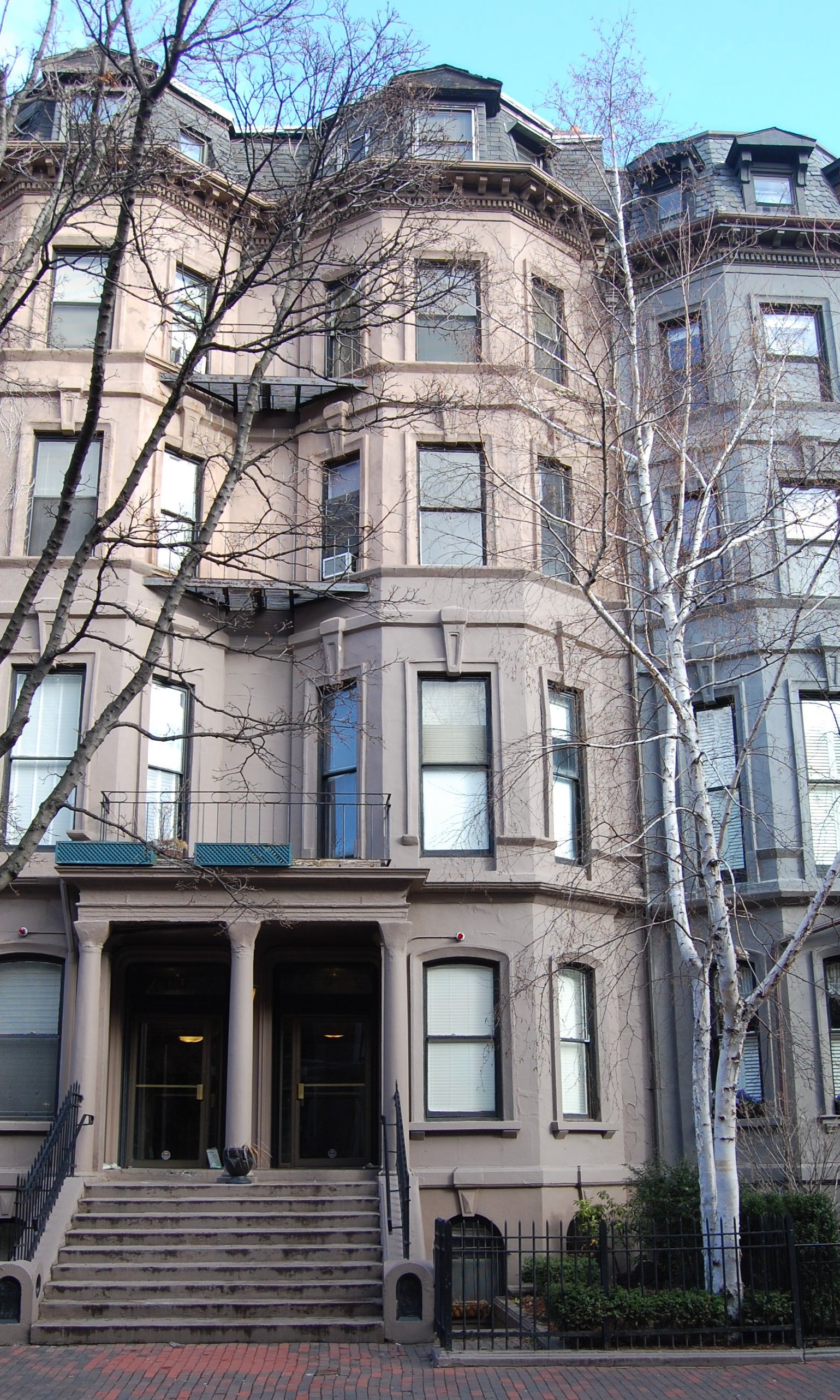 During the 1877-1878 winter season, it was the home of Katherine (Kate) Smith (Prescott) Ward, the wife of Charles Chandler Ward, and their son, Prescott (Charles) Temple Ward (Charles and Kate Ward were separated; he died in January of 1879). Kate Ward and Prescott Ward had lived at 71 Mt. Vernon in 1876. By 1880, they were living at 198 Beacon with her mother, Ruth Wetherbee (Brooks) Prescott, the widow of Otis Brigham Prescott.