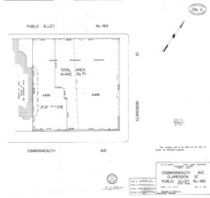 Click here for an index to the deeds for the predecessor buildings at 260 Clarendon (99 Commonwealth) and 107 Commonwealth, and click here for further information about the land between the north side of Commonwealth and Alley 424, from Clarendon to Dartmouth.