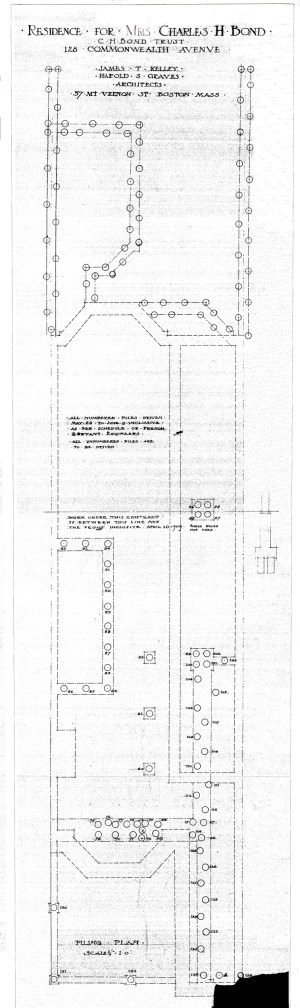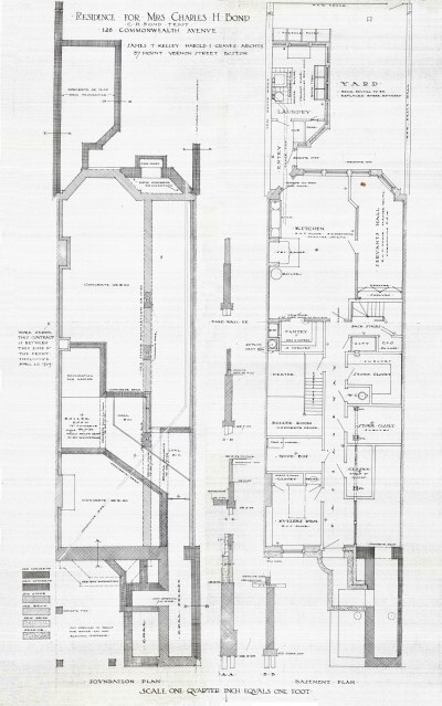 In April of 1909, architects James T. Kelley and Harold S. Graves prepared plans for remodeling 128 Commonwealth for Isabella (Bacon) Bond, the widow of Charles H. Bond.