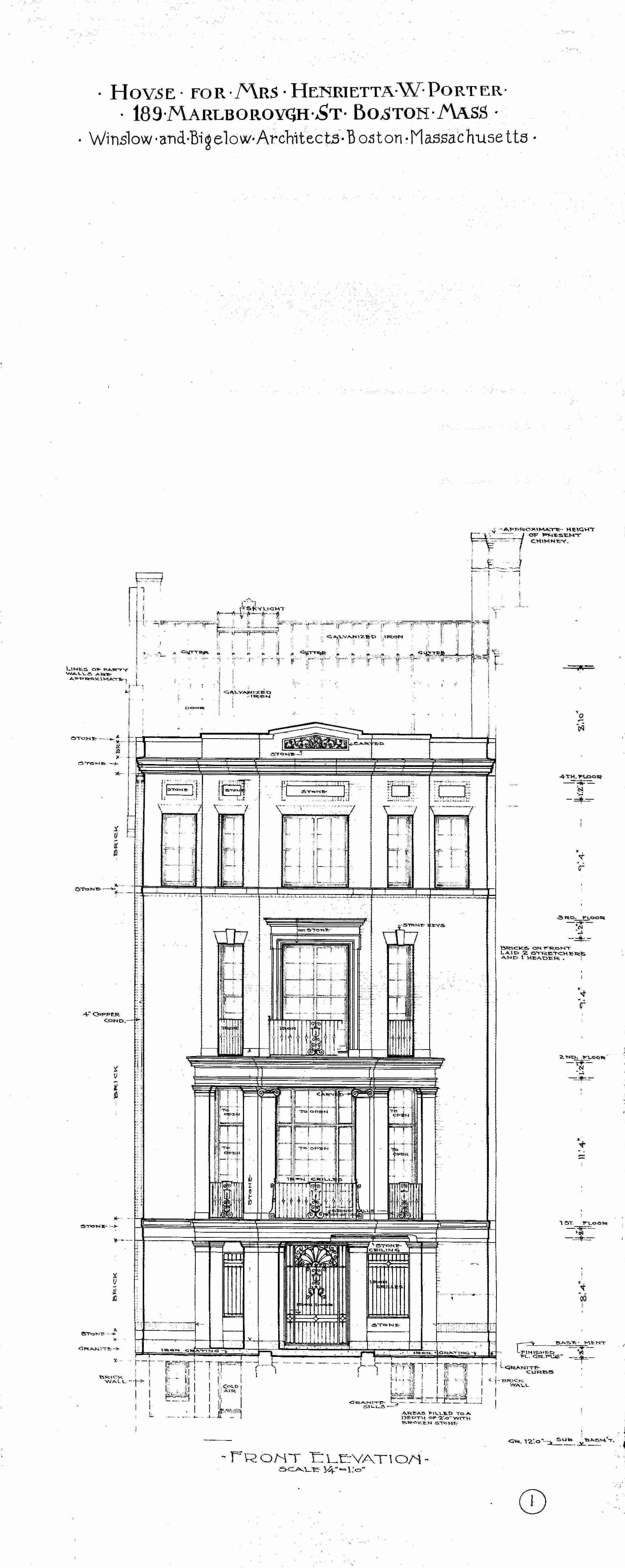 189 Marlborough was designed by Winslow and Bigelow, architects, and built in 1906 by the firm of Bigelow and Mabie (William DeFord Bigelow and William I. Mabie).