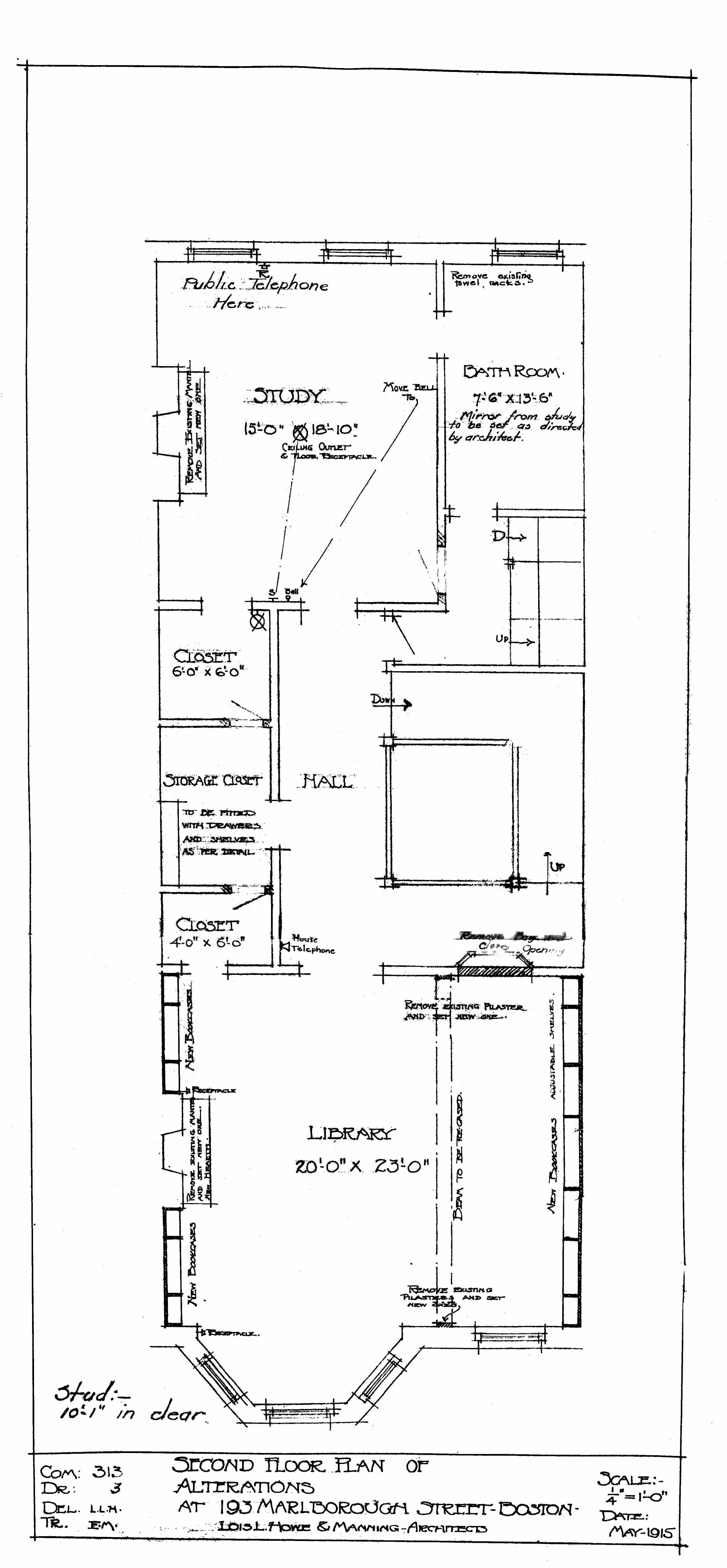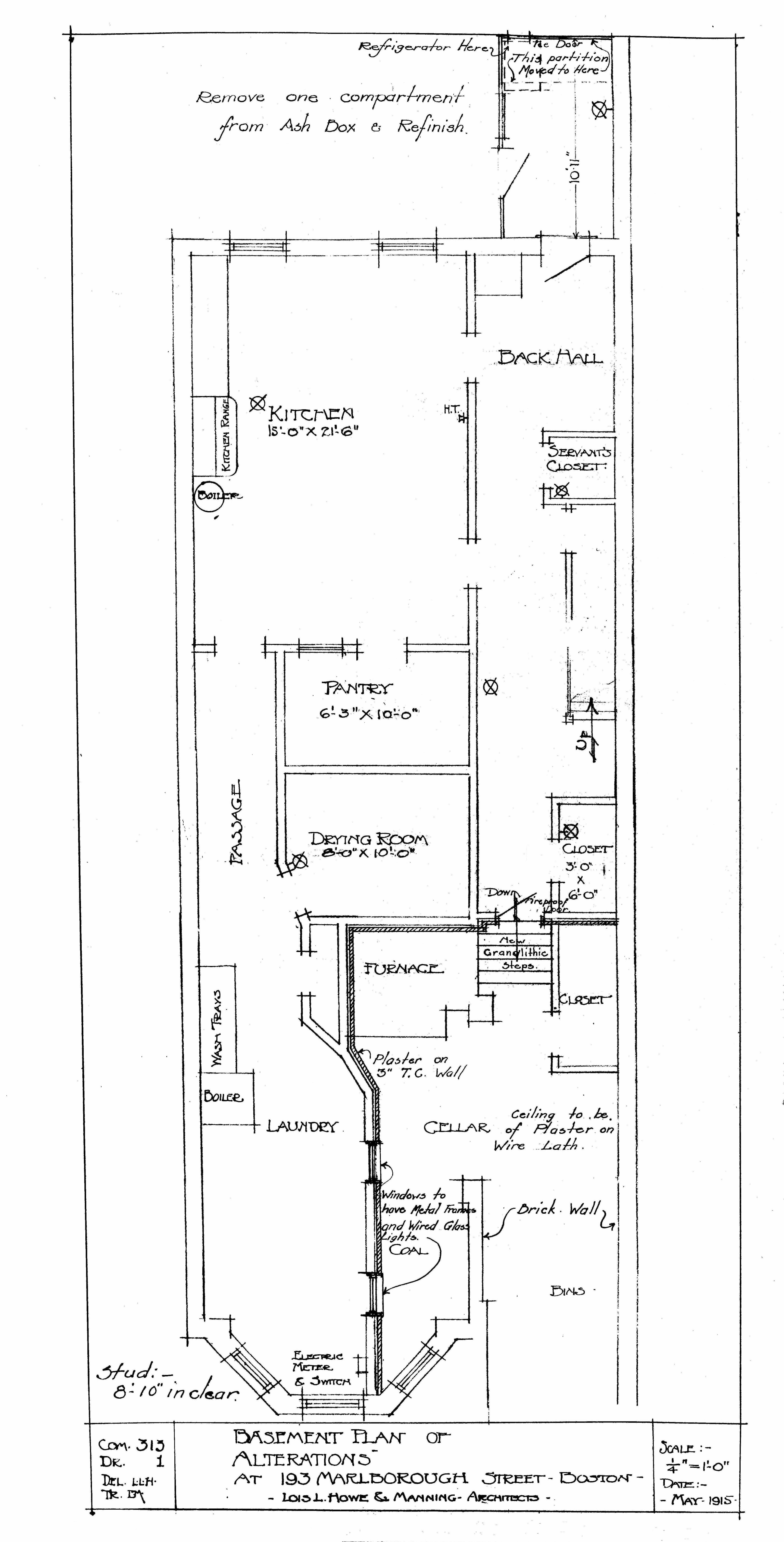 In mid-1915, the firm of Lois L. Howe and Manning, architects, prepared plans for remodeling 193 Marlborough.