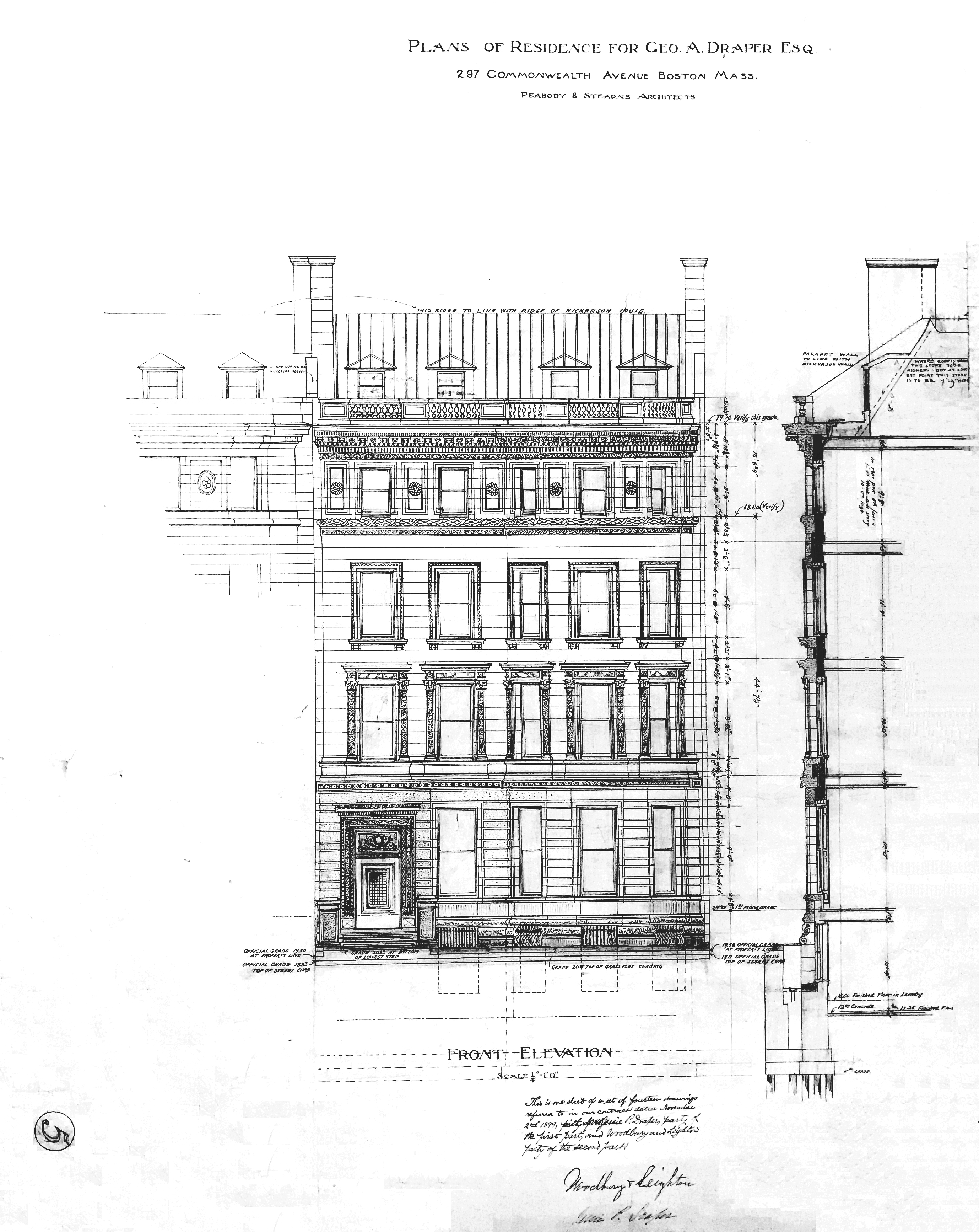 297 Commonwealth was designed by Peabody and Stearns, architects, and built in 1899-1900 by Woodbury & Leighton, builders