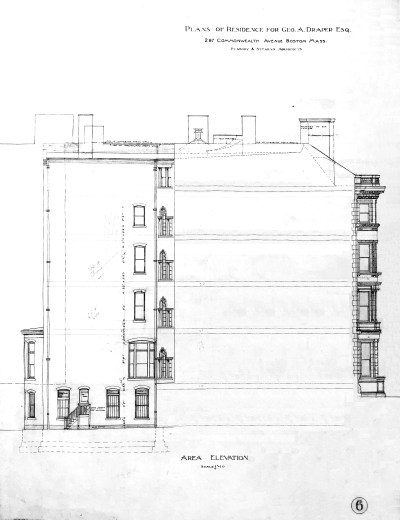 297 Commonwealth, elevation of western side of house, showing inset rear area to the left (1899); Peabody and Stearns