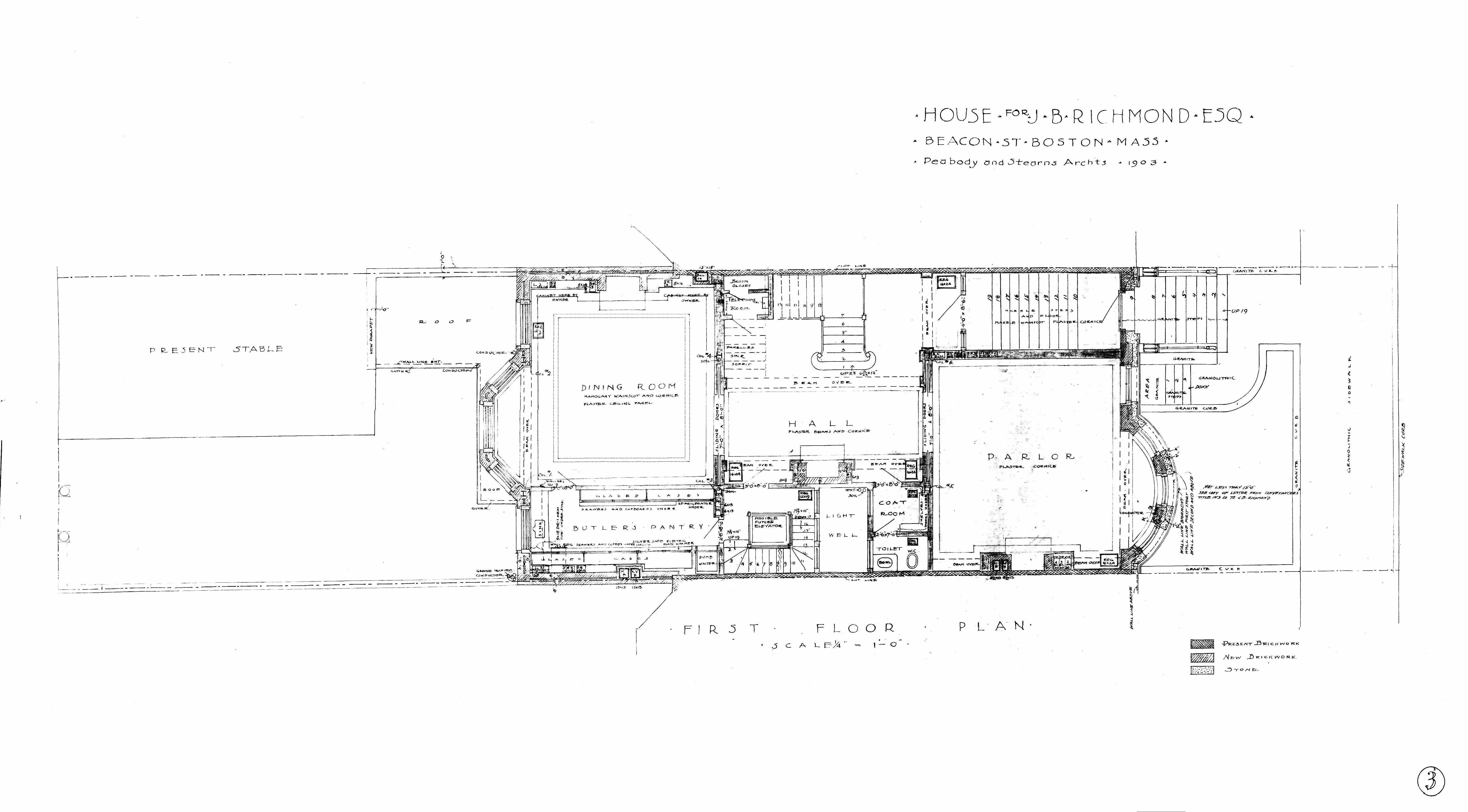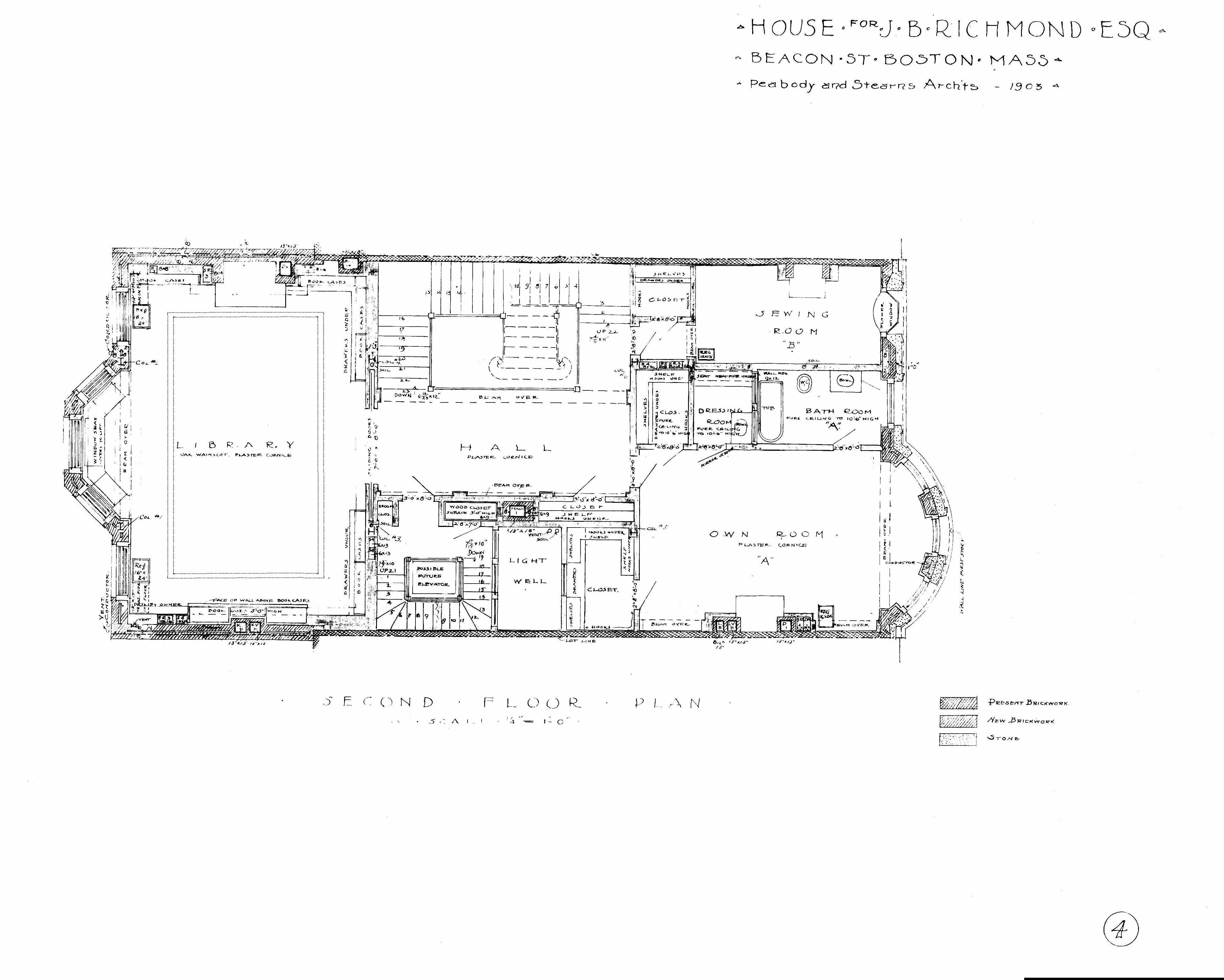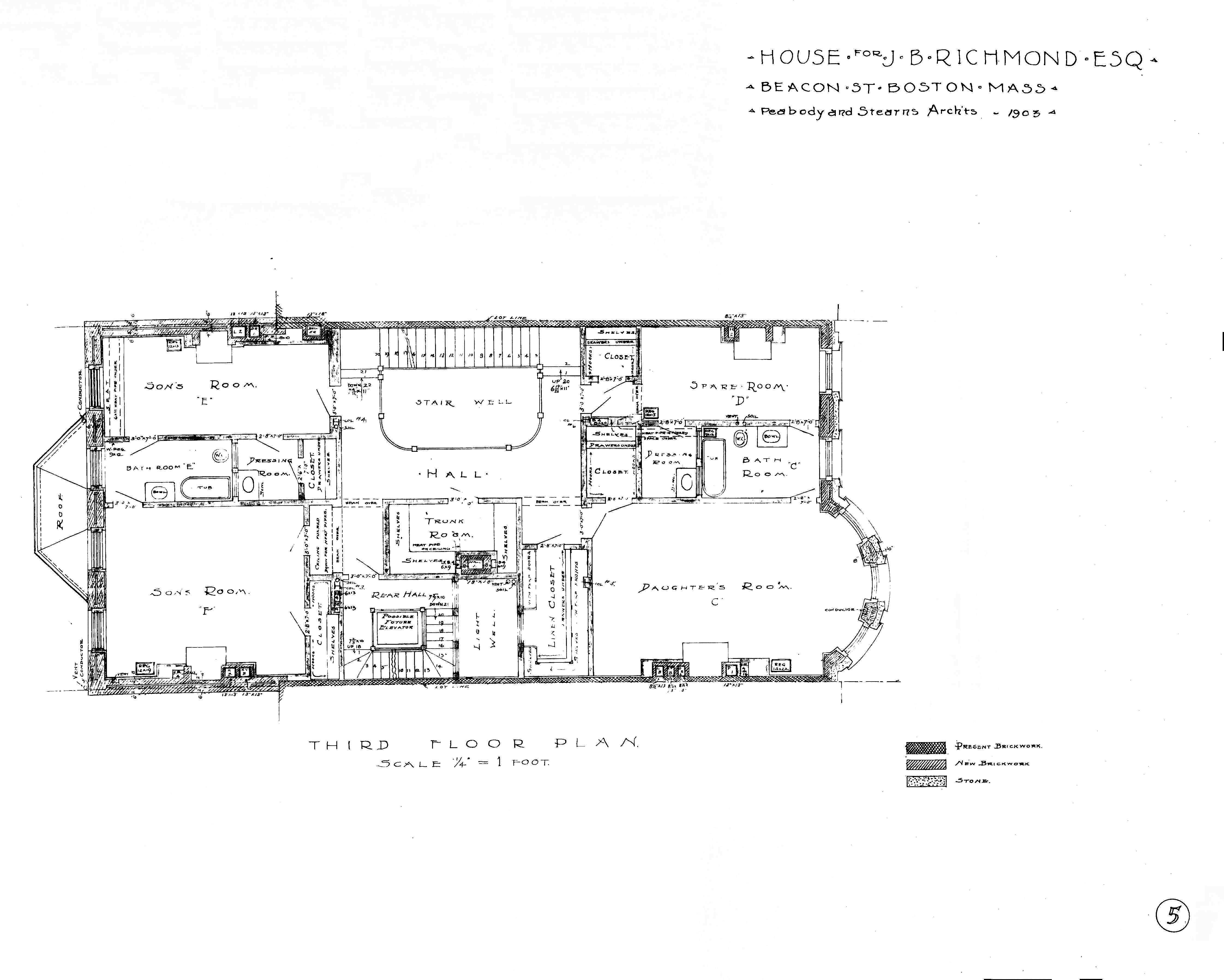 The original blueprints for the house are located in both the City of Boston Blueprints Collection in the Boston City Archives (reference BIN A-89) and in the Peabody and Stearns Collection in the Boston Public Library Arts Department (reference PS/MA.133). The plans include twenty sheets of drawings, including elevations, foundation and piling plans, floor plans, framing plans, and sections.