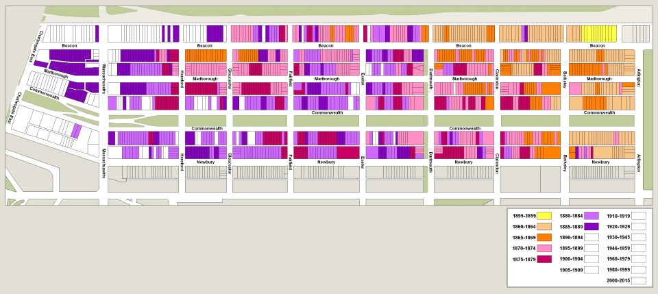 Back Bay Development to 1889 ← Previous Next → Original Construction through 1889 Original construction on vacant lots: to 1889