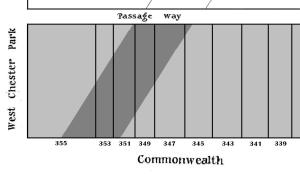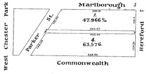 North side of Commonwealth showing lots for 339-355 Commonwealth, with area where Parker Street formerly was located
