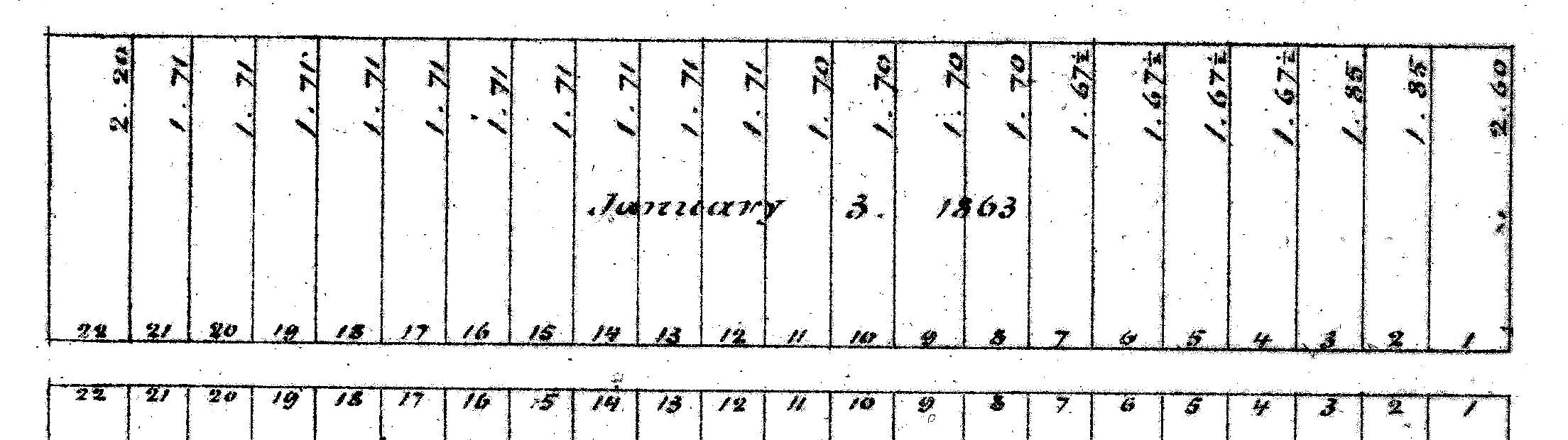 Excerpt from plan of land sales through 1879, showing price paid per s.f.; 1879 Harbor and Land Commissioners Report
