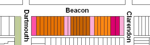 Original Construction. All of the houses on the south side of Beacon between Clarendon and Dartmouth had been built by 1874.