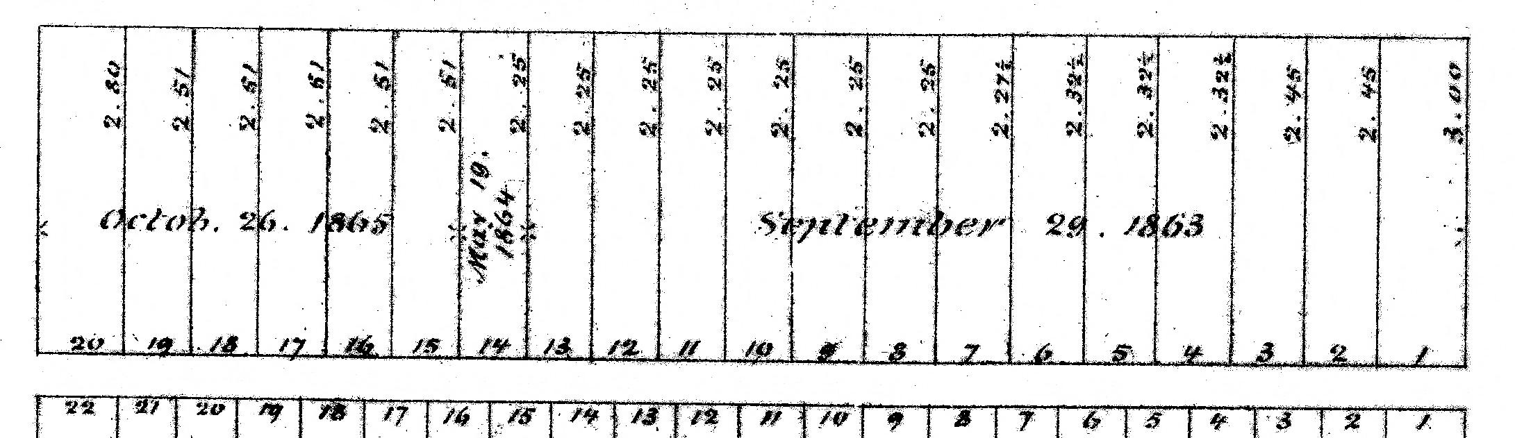 The seven lots not sold at the Commonwealth’s September 30, 1863, auction were offered again at the auction on May 19, 1864. Only one, Lot 14, sold. The Boston Evening Transcript reported that the buyer was R. Bors, probably Christian Börs, who took title to the property on May 25, 1867.