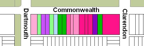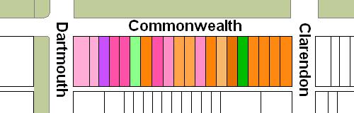 Original Construction. All of the buildings on the south side of Commonwealth between Clarendon and Dartmouth had been built by 1885.