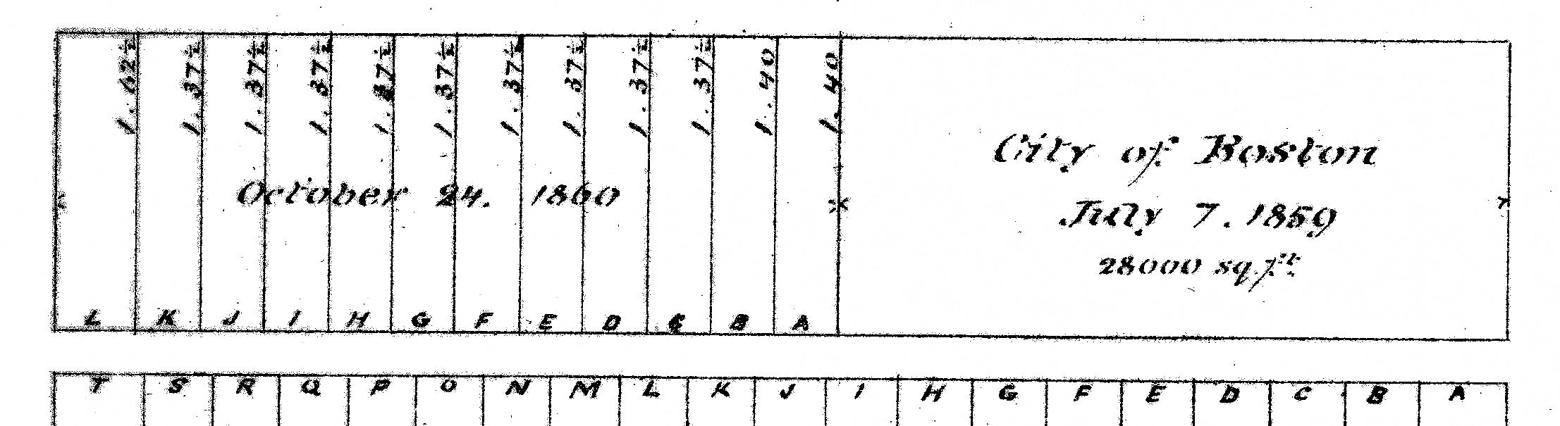 Plan of lots offered for sale at the October 24, 1860, Commonwealth of Massachusetts auction (Suffolk Co. Deed Registry, Book 778, p. 160)