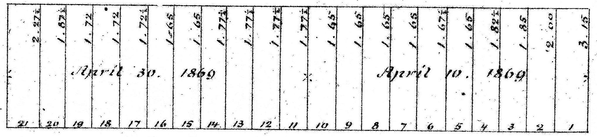 Excerpt from plan of land sales through 1879, showing price paid per s.f.; 1879 Harbor and Land Commissioners Report