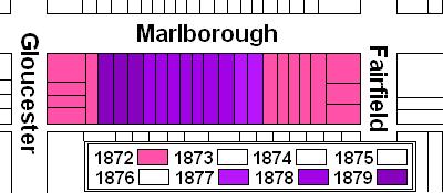 Original Construction. All of the buildings on the south side of Marlborough between Fairfield and Gloucester had been built by 1879.