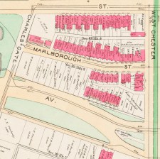 On December 15, 1882, the Beacon Street Lands Trust and the Commonwealth Avenue Lands Trust, “being desirous that that portion of Marlborough Street be laid out as a public street,” transferred to the City of Boston the land required to extend the street from Massachusetts Avenue to Charlesgate East. The extension was 50 feet wide, as compared with the 60 foot width of Marlborough further east.