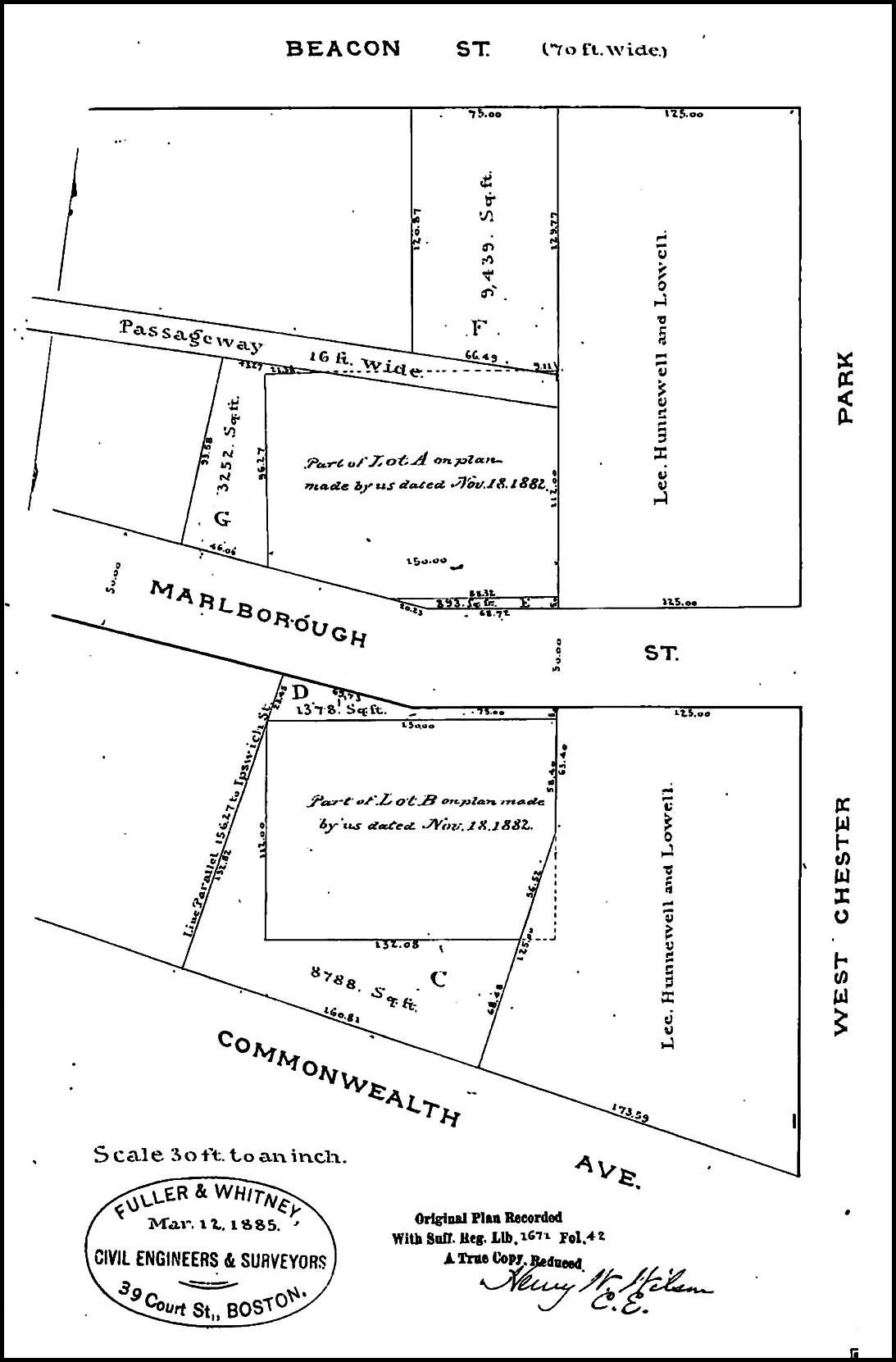 Plan showing lot conveyed to Augustus Lowell (Lot “A”); Suffolk Co. Deed Registry, Book 1711, p. 34 (26Jan1886)