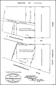 The Boston Water Power Company sold all of its land west of Massachusetts Avenue between the south side of Beacon and the north side of Commonwealth in two transactions, one in 1872 and the second in 1880.