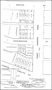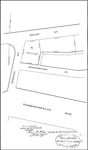 Plan showing lots purchased by the Beacon Street Lands Trust; Suffolk Co. Deed Registry, Book 1095, p. 1 (1Mar1872)