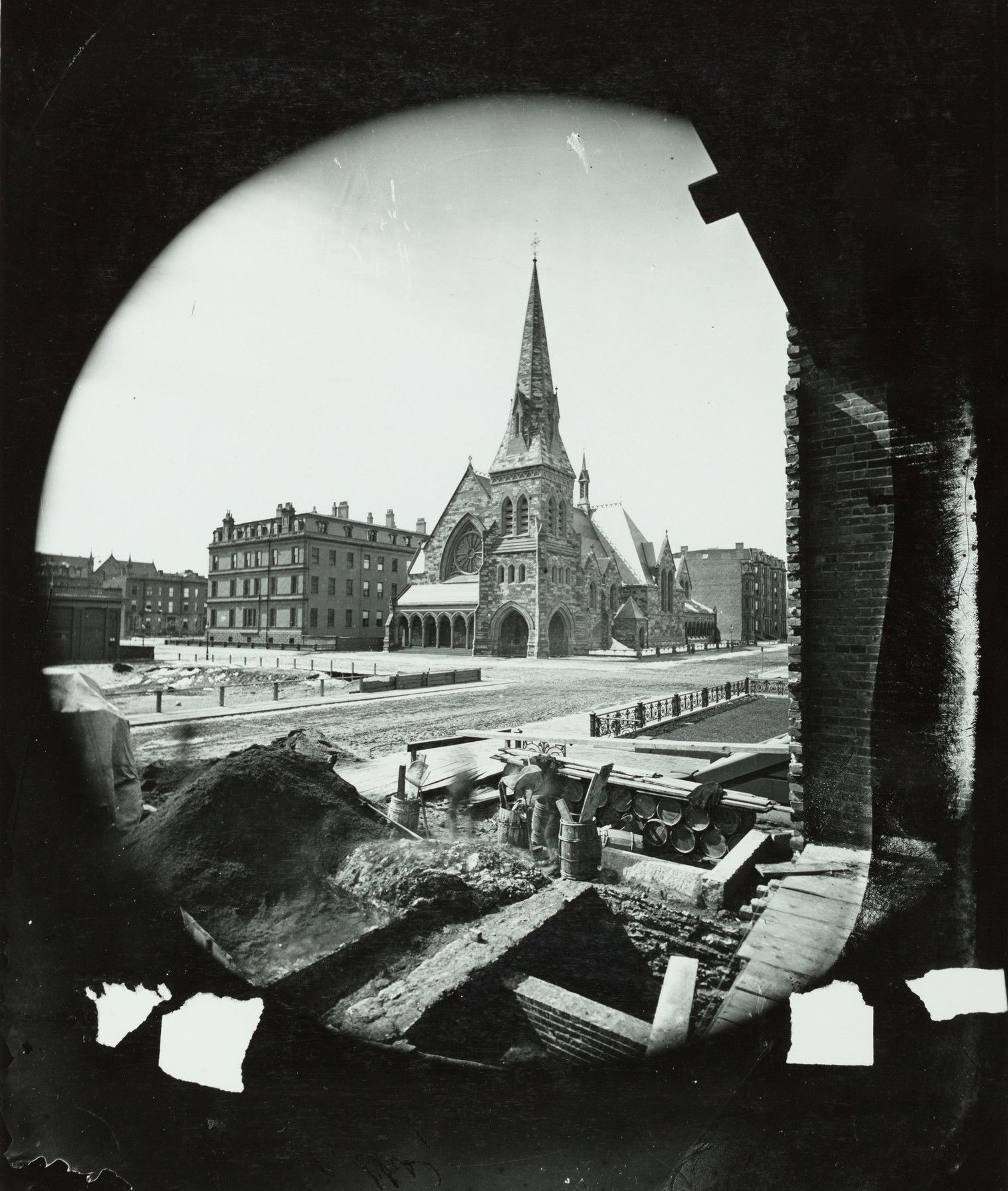 First Church Boston (ca. 1869): 60-64 Marlborough (294 Berkeley) First Church Boston (ca. 1869), looking southwest, soon after its completion, photograph by Josiah Johnson Hawes; courtesy of Historic New England