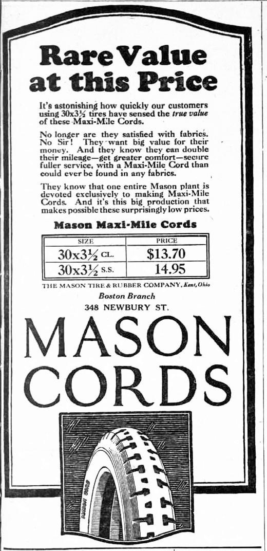 In December of 1922, 348 Newbury was purchased by William H. Wilson and converted into commercial space for the Mason Tire and Rubber Company.