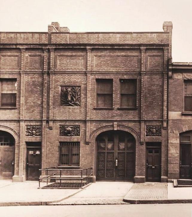 350 Newbury was designed by Bradlee and Winslow and built in 1881 by Vinal & Dodge (Warren D. Vinal and Charles A. Dodge), masons, as a two-story plus basement brick stable and dwelling with a 25 foot frontage, one of two built at the same time in the same design (348-350 Newbury). As originally built, each stable had terra cotta animal heads on the eastern portion of the front façade, a cow and dog at 348 Newbury and a horse and a dog ar 350 Newbury, with the two dogs facing so that they appeared to be looking at each other.