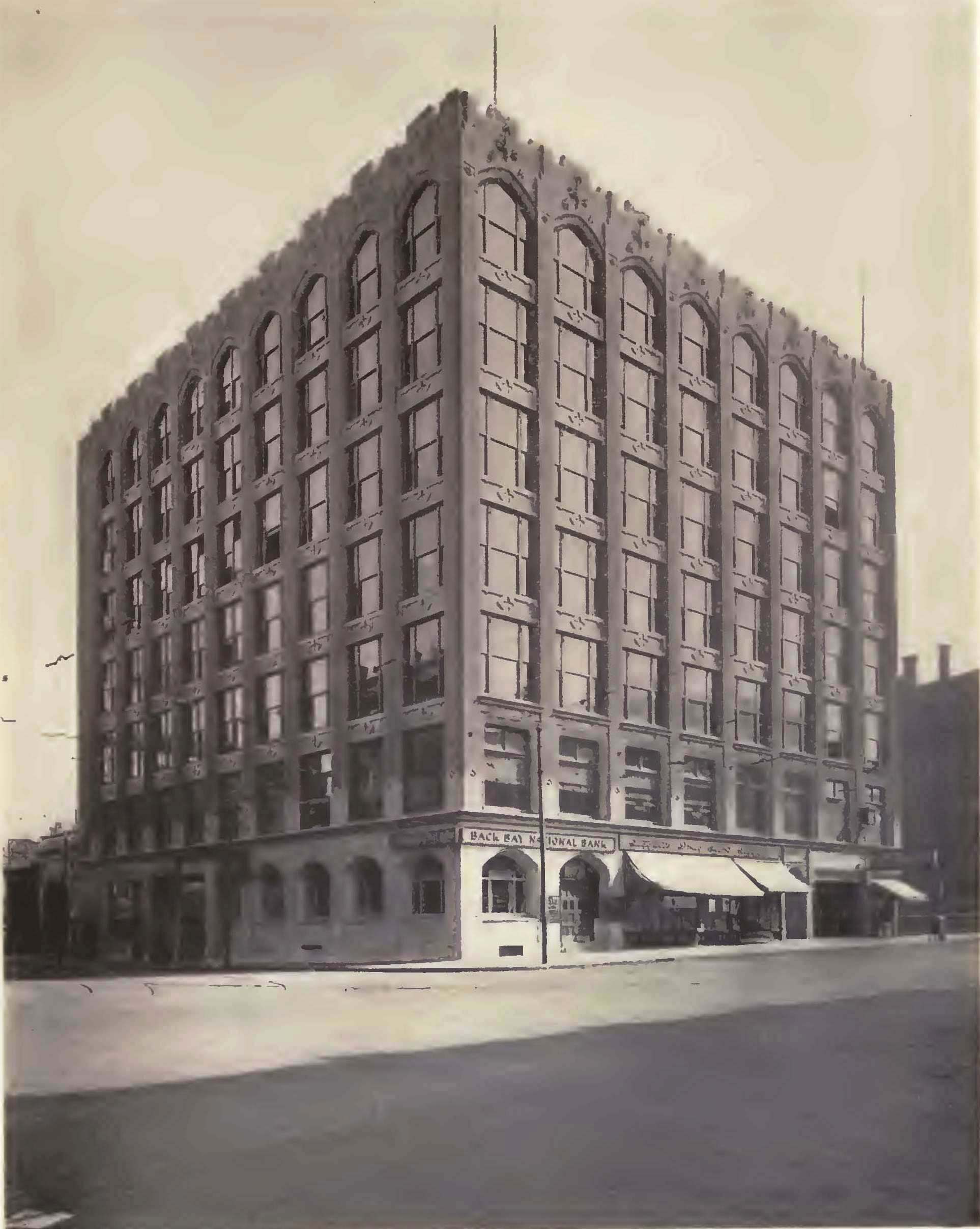 When it was completed, it was known as the Transit Building. The Newbury Realty Company leased the street level space to the Back Bay National Bank and most of the office and loft space to the Boston Elevated Railway Company.